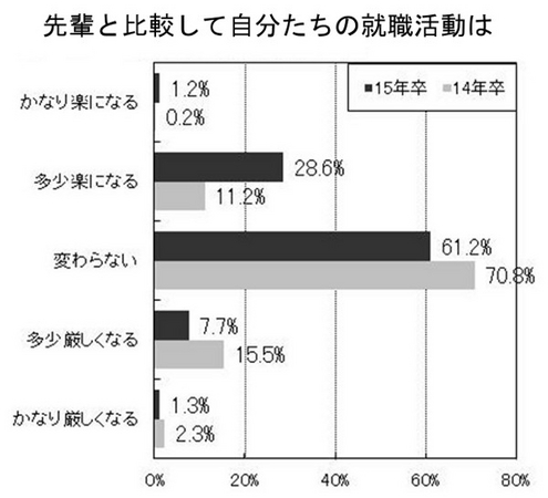 ~ 就活開始直後から活発な活動を展開し、活動量は前年よりやや増加傾向。「内定を取る自信」が高まり、景気向上への期待感から自分たちの就職活動は「楽になる」 が大幅増 ~