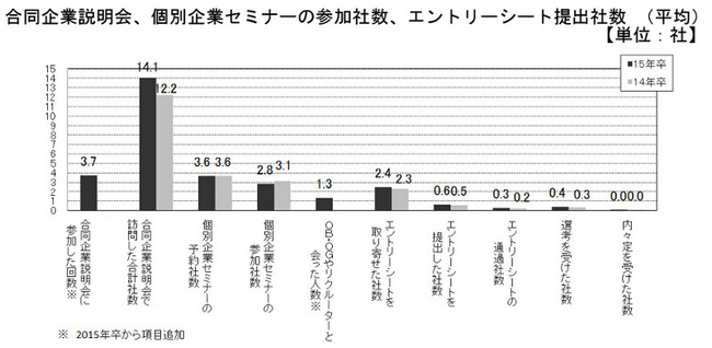■ 平均エントリー社数・合同説明会の合計訪問社数などが前年を上回り、積極的に企業と接触