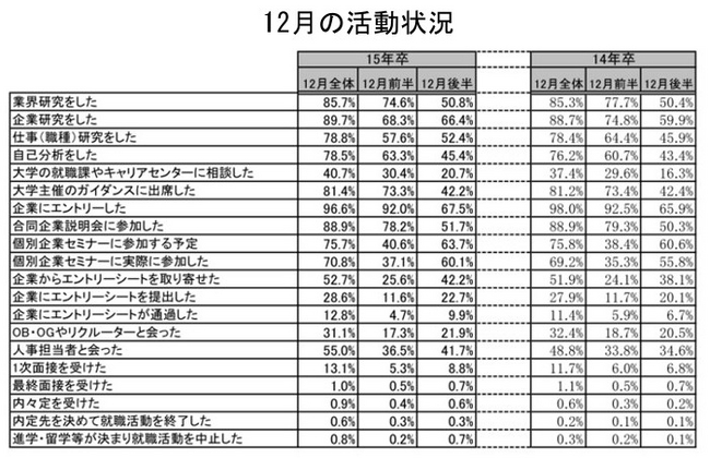 「2015年卒マイナビ学生就職モニター調査 12月の活動状況」を発表