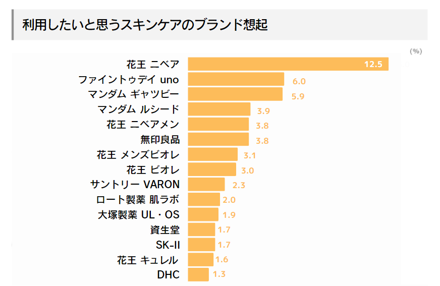ブランド想起:ニベア、UNO、ギャツビー、ビオレ
