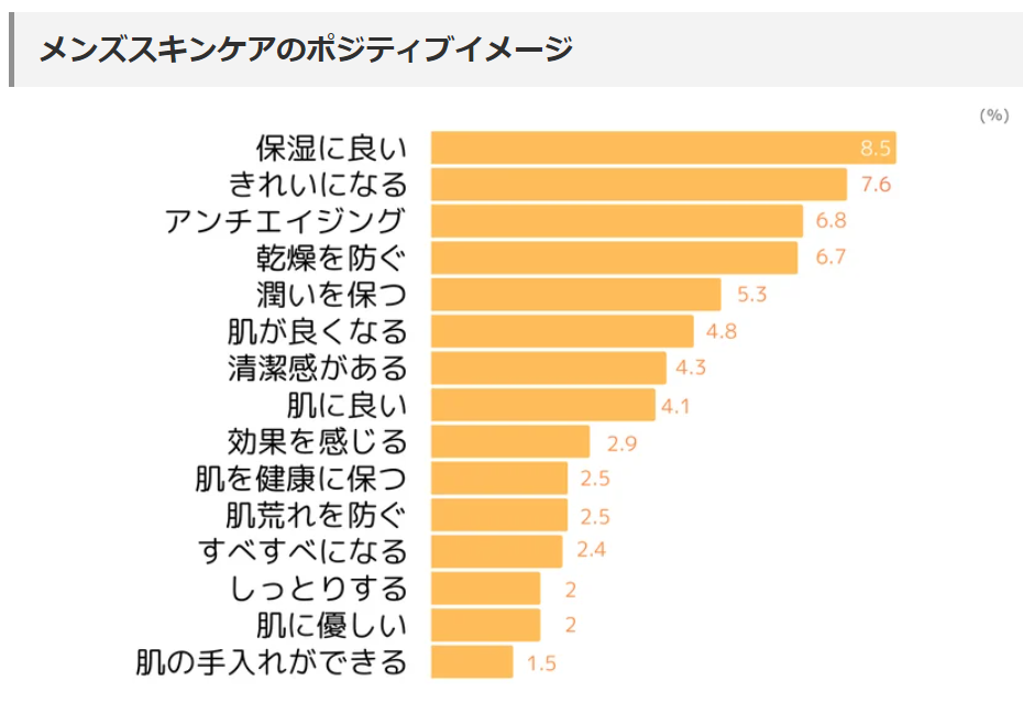 メンズスキンケアは「保湿によい」「気持ちが高まる」「身だしなみ」というポジティブな