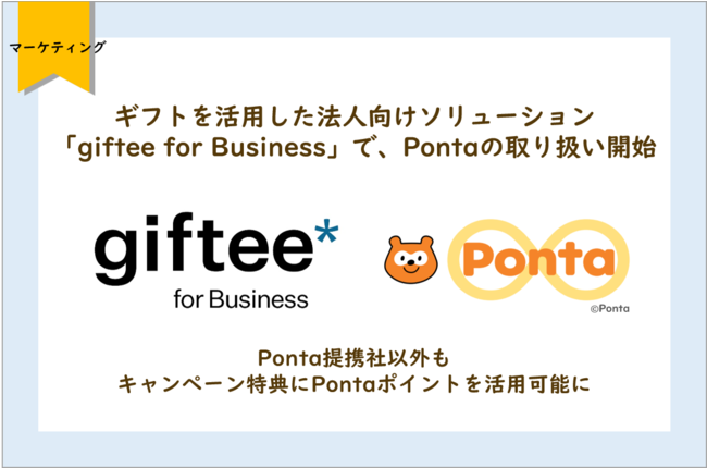 ギフトを活用した法人向けソリューション「giftee for Business」で、Pontaの取り扱い開始 Ponta提携社以外も、キャンペーン特典にPontaポイントを活用可能に