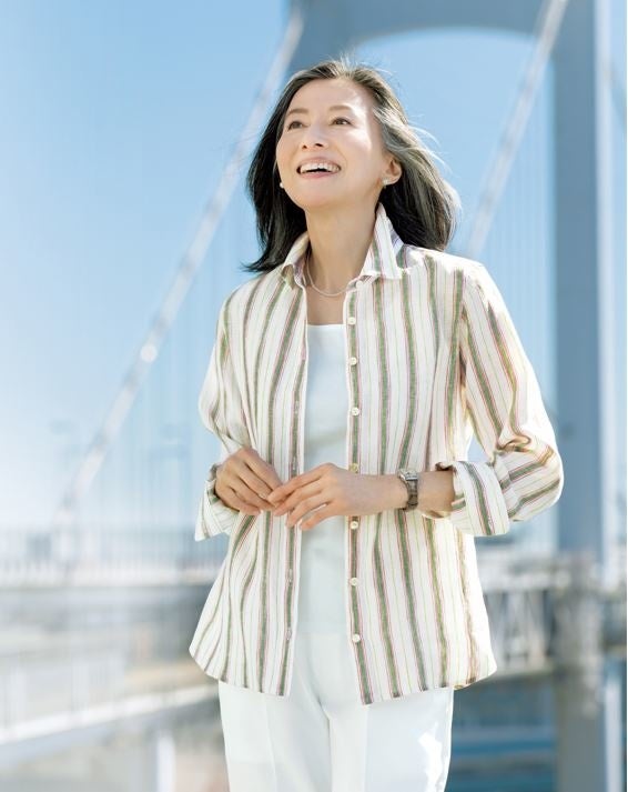 - 夏色ストライプに染まったフレンチリネンのシャツ
