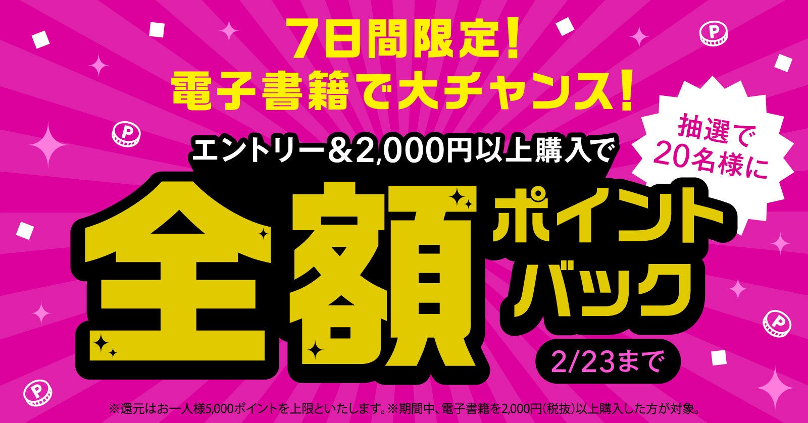漫画全巻ドットコム本店では抽選で20名様に当たる、電子書籍全額ポイントバックキャンペーンを実施!