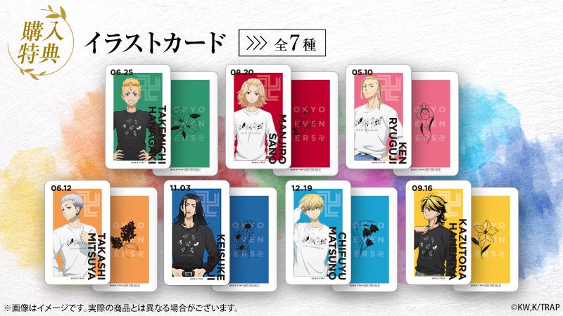 描き下ろしイラストでは、“花”をテーマにしたお揃いのロングTシャツを着用。タケミチ、マイキー、ドラケン、三ツ谷、場地、千冬、一虎ら7名、それぞれのコーディネートとなっております。