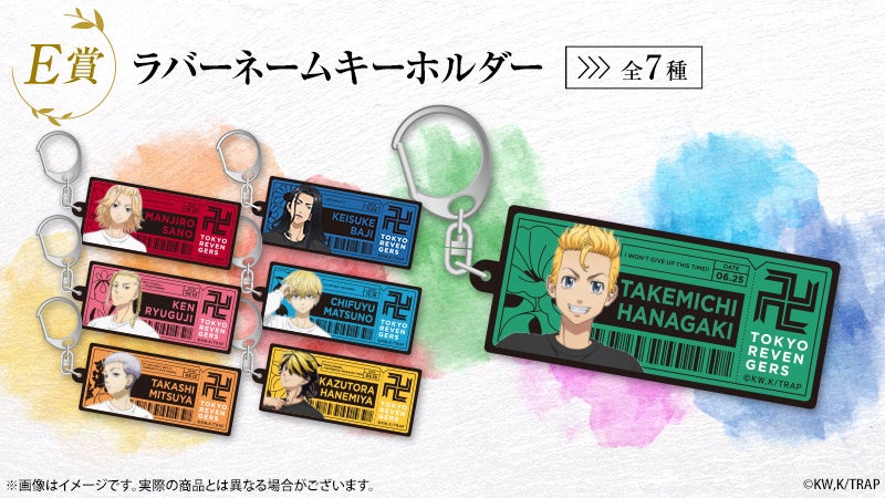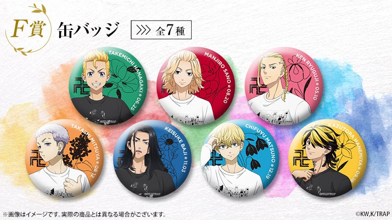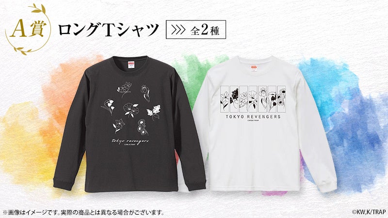 毎日を一緒に過ごせるアイテムを中心にした、A~F賞までの全6種類。A賞には、タケミチたちとお揃いのロングTシャツをラインナップしております。