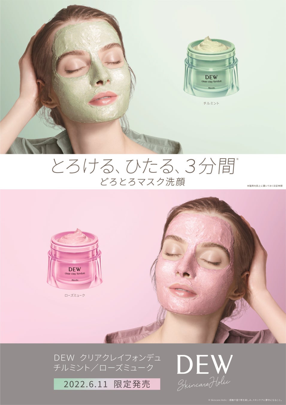 “泥とろマスク洗顔“ 「DEW クリアクレイフォンデュ」から爽やかさ感じる「チルミント」、幸福感あふれる「ローズミューク」限定2種の香りが登場!6月11日数量限定発売