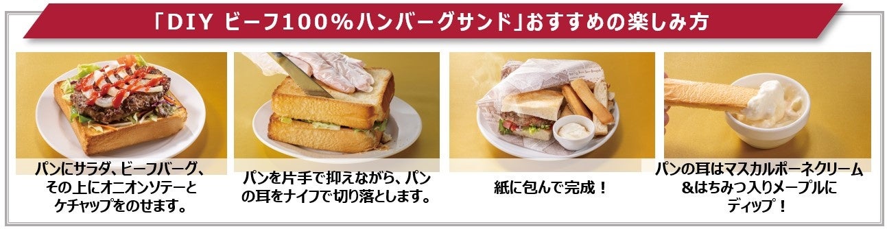 実際に自ら考案した「DIY ビーフ100%ハンバーグサンド」のDIYの工程を披露する際に、内田シェフからナイフではなくのこぎりを渡されたヒロミさんは、「内田君!そっちじゃないよ。お客さんにのこぎり出さないでしょ!」とヒロミさんらしいツッコミを炸裂。その後、ご自身でDIYした商品をご試食いただくと「おいしいよ!パンの耳をマスカルポーネクリームとメープルシロップにつけて食べるとデザート代わりにもなる。絶品!」と大絶賛。