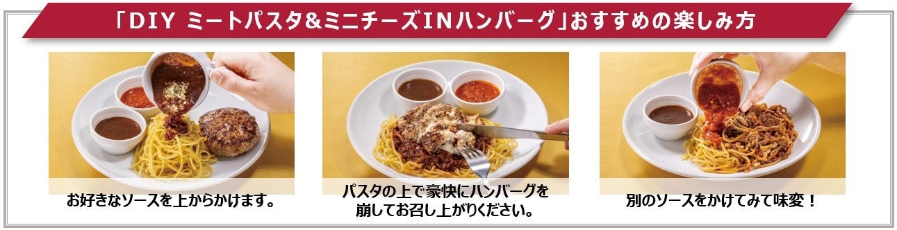 12種のチーズを使ったミニチーズINハンバーグをお好みの大きさに崩し、お好みのソースでお楽しみください。