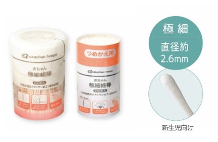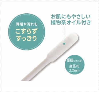 新生児の耳や鼻、おへそのお手入れに!『オイル付きでもっと汚れが取れやすい 極細たわら型綿棒』登場