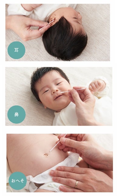 綿棒は耳だけでなく新生児初期はおへそを清潔に保つために、2~3歳頃までは鼻水のケアに使うなど育児に欠かせない万能アイテムです。