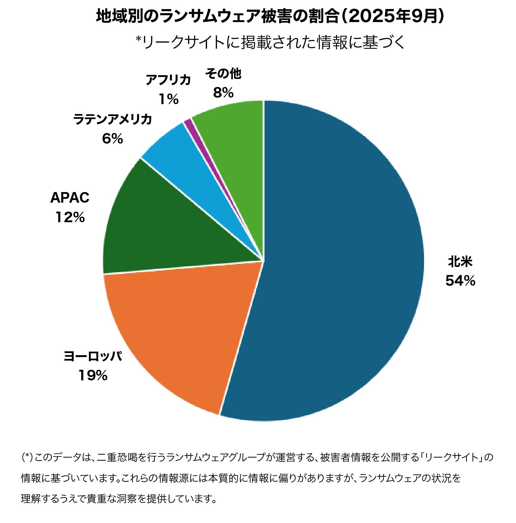 このデータは、地域による二極化が進んでいることを示しています。一部の地域では一時的な減少が見られる一方で、特に北米を中心に、高度なランサムウェア攻撃やデータ恐喝の再燃に直面しています。