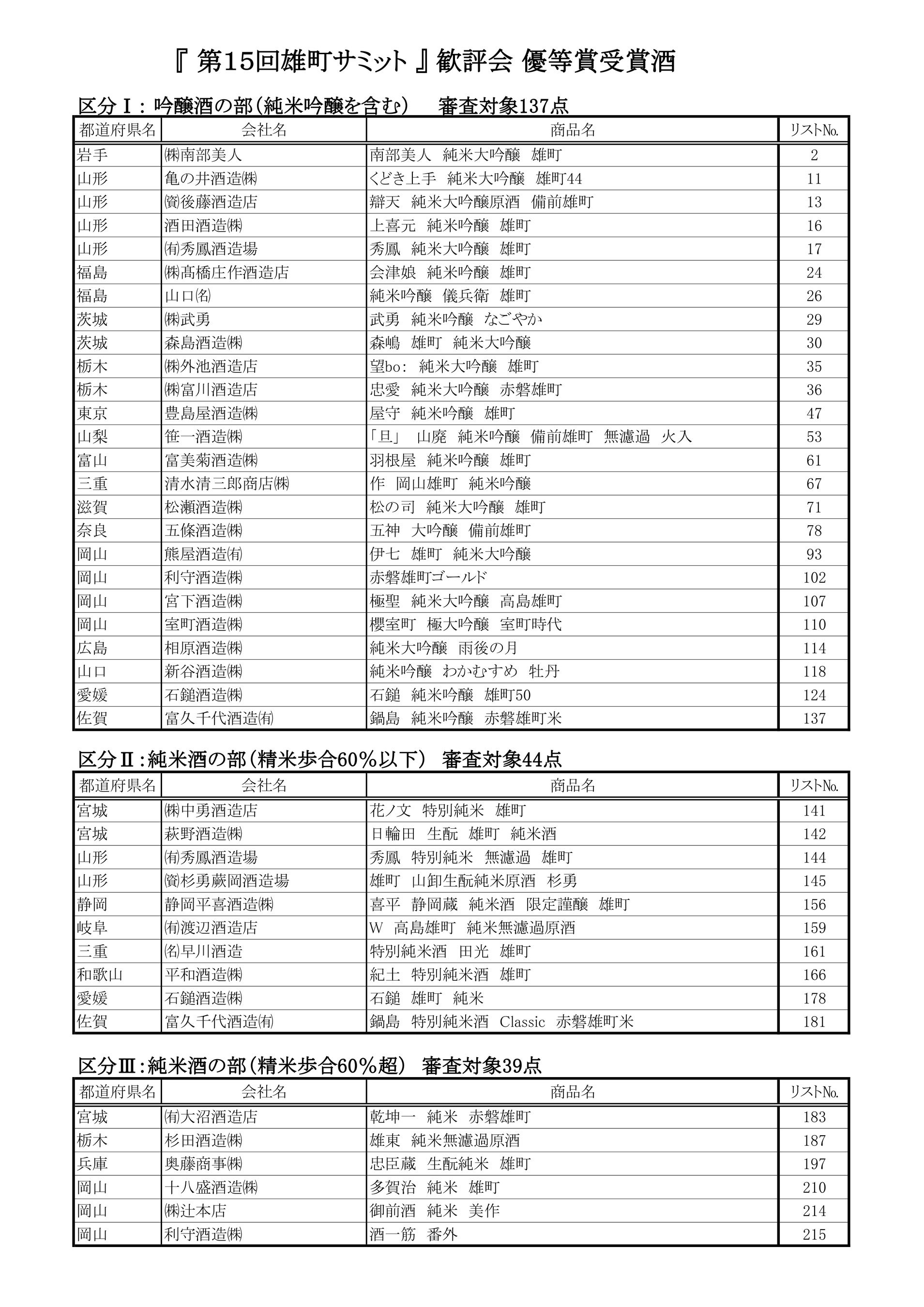 \岡山発祥の雄町と地酒の魅力をとことん追求する2つのイベント/岡山の酒蔵14蔵が一堂に会した『岡山蔵元大集結』、『第15回雄町サミット』では125酒蔵/221点が出品、最優等賞を発表!