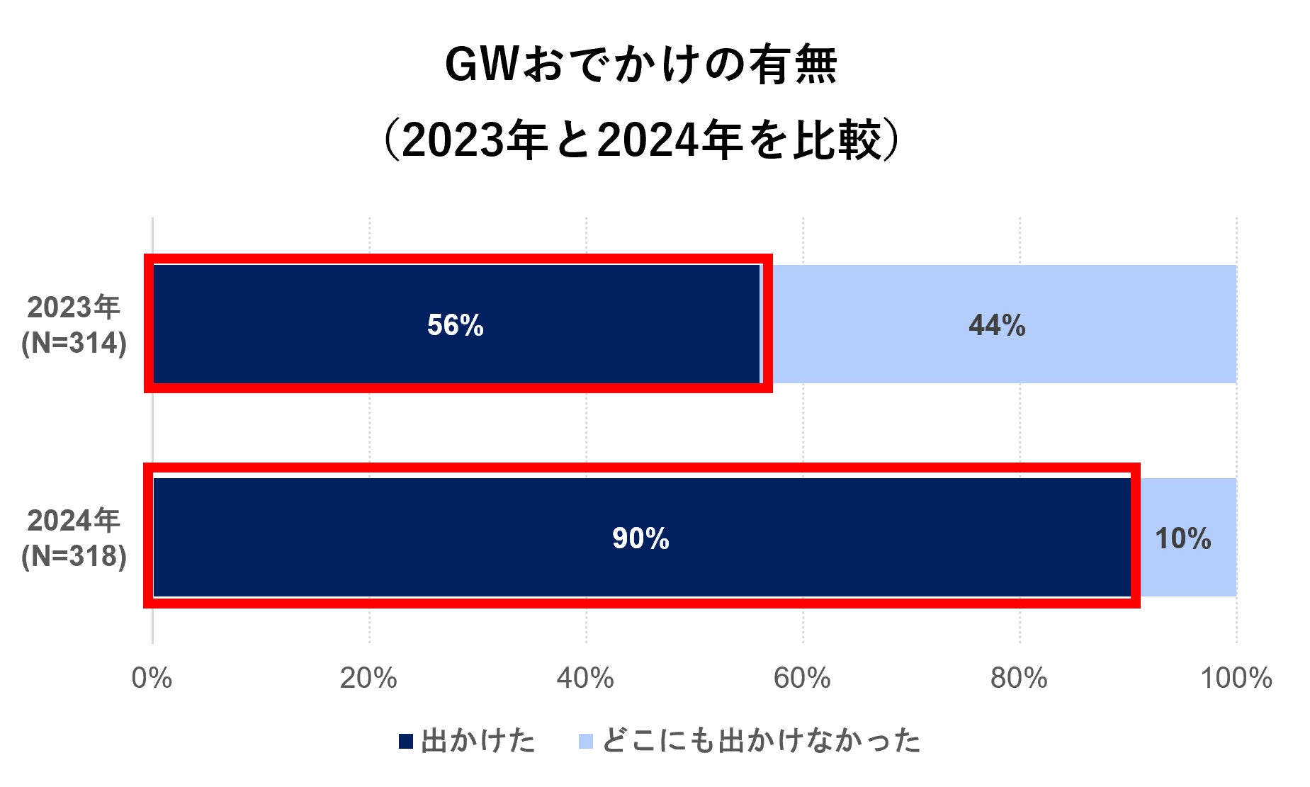 参考に、昨年2023年のGWの調査と比較した結果も見てみましょう。