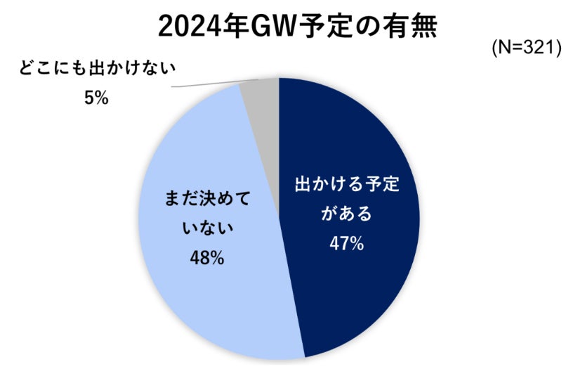 4月上旬に実施した「GWにお出かけの予定があるか」というユーザーアンケートでは「出かける予定がある」と回答した人は約半数で、「まだ決めていない」という人も約半数ほどいました。「まだ決めていない」と回答した人のほとんどが、GWに実際はお出かけしたと思われます。