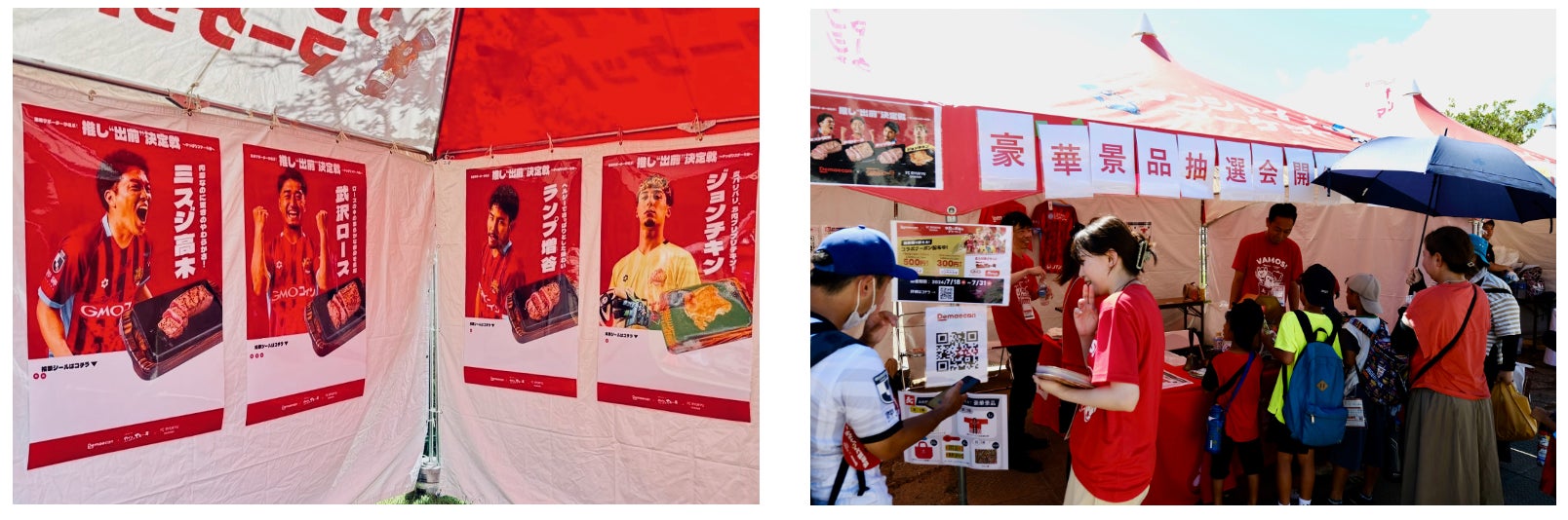 沖縄で人気の「やっぱりステーキ」とFC琉球、出前館のコラボ企画では、来場サポーターのみなさまにご協力いただき、推し“出前”No.1を決定いたしました。見事、推し“出前”のNo.1に輝いたステーキは、期間限定で出前館だけの特別価格でご注文いただけるキャンペーンを実施いたしますので、結果発表をお待ちください!その他にも出前館ブースでは、冠試合当日にしか手に入らない選手のサイン入りグッズなどが当たる抽選会を実施し、たくさんのサポーターにご参加いただきました。