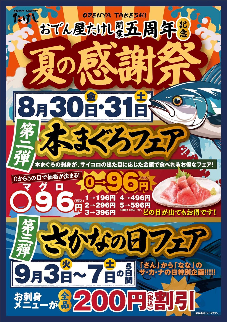 【 おでん屋たけし 開業五周年記念 夏の感謝祭 概要 】