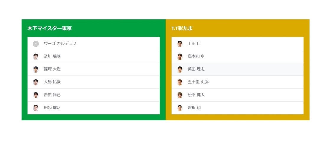 ノジマTリーグ 2022-2023シーズン 公式戦 9月10日開催 木下マイスター東京 vs #TT彩たま ベンチ入り選手発表