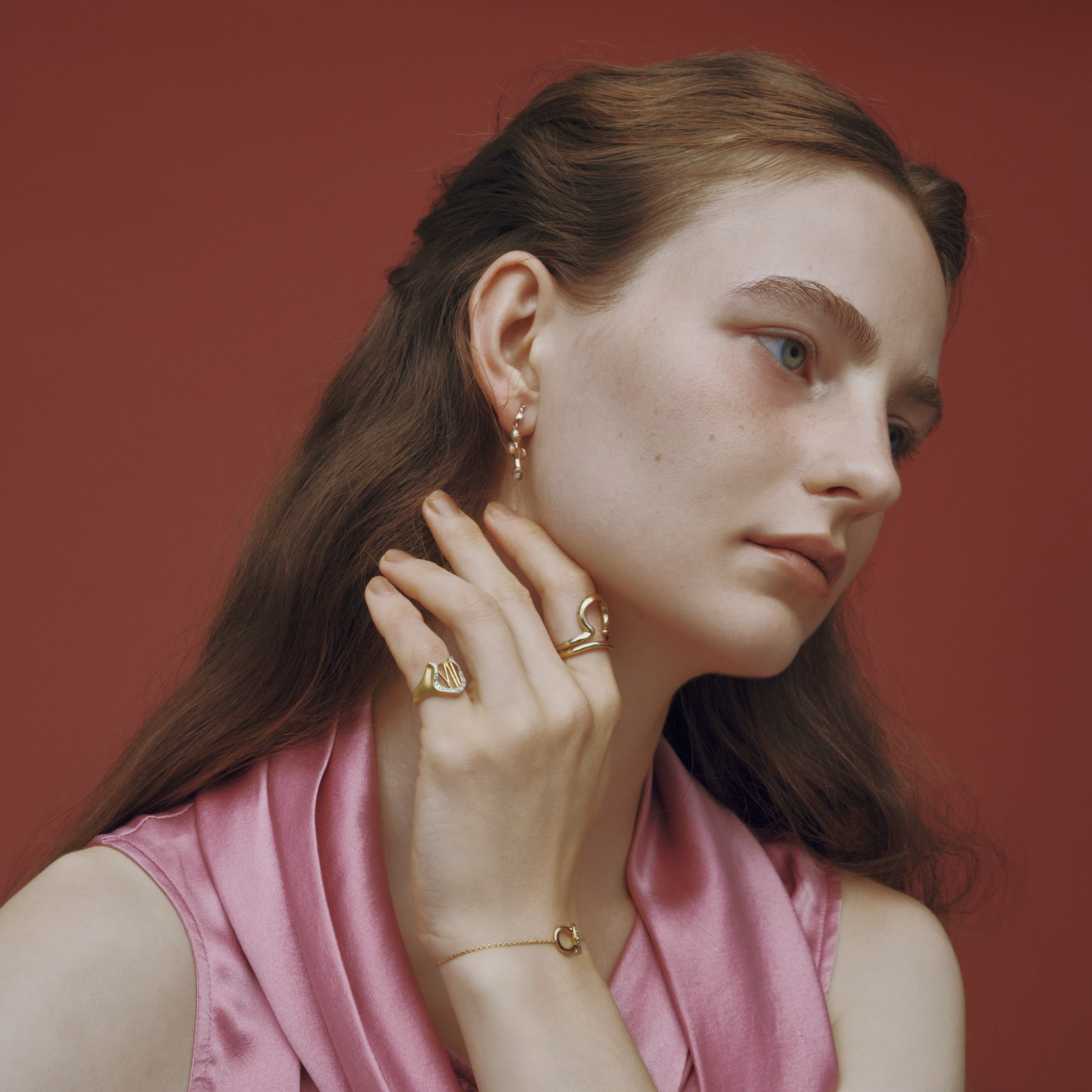 かつてパートナーシップのお守りとされていた馬蹄モチーフをモダンにアレンジした、幸せの予感を運ぶピンキーリングを。