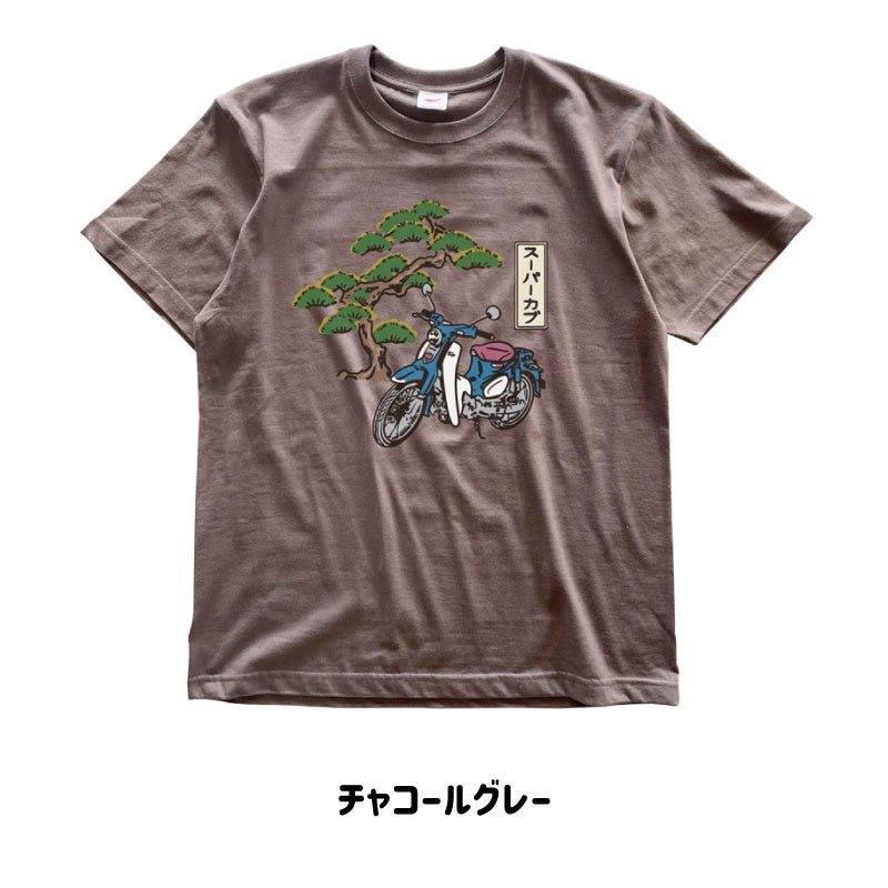 ホンダスーパーカブの浮世絵風イラストがプリントされたTシャツです。