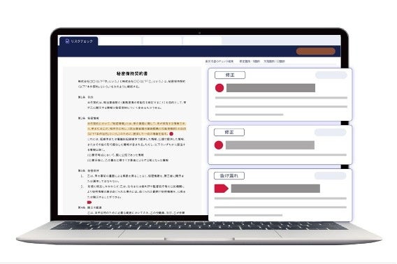 導入社数250万社以上、累計送信件数1,500万件超の国内シェアNo.1の契約マネジメントプラットフォーム「クラウドサイン®︎」が提供するAIによる契約書の自動レビュー支援サービスです。2023年7月より株式会社リセと資本業務提携をし、本サービスの提供を開始いたしました。契約書ファイルをアップロードし、自社の立場を選択すると、AIが即座に不利な条項や抜けている条項を指摘します。専門弁護士が作成した解説や自社に有利な条文サンプルも表示されるため、高度な専門知識がなくても、レビューの工数を大幅に削減できます。