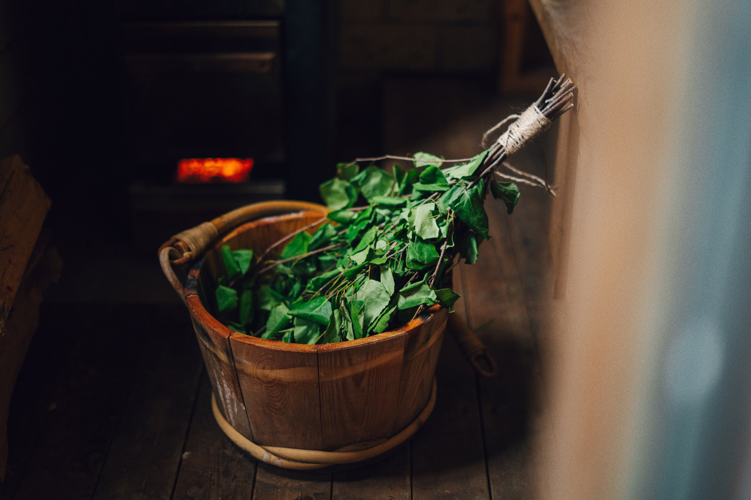 フィンランドなどのサウナ文化に欠かせない白樺の枝葉を束ねたブーケ状のもの。水に浸してサウナ内で香りを楽しんだり、身体に刺激を与えてマッサージする。