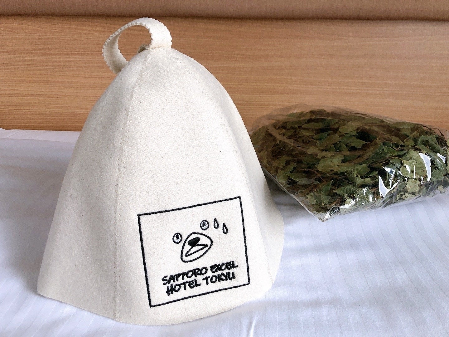 左:下川町産白樺ヴィヒタ 右:オリジナルサウナハット