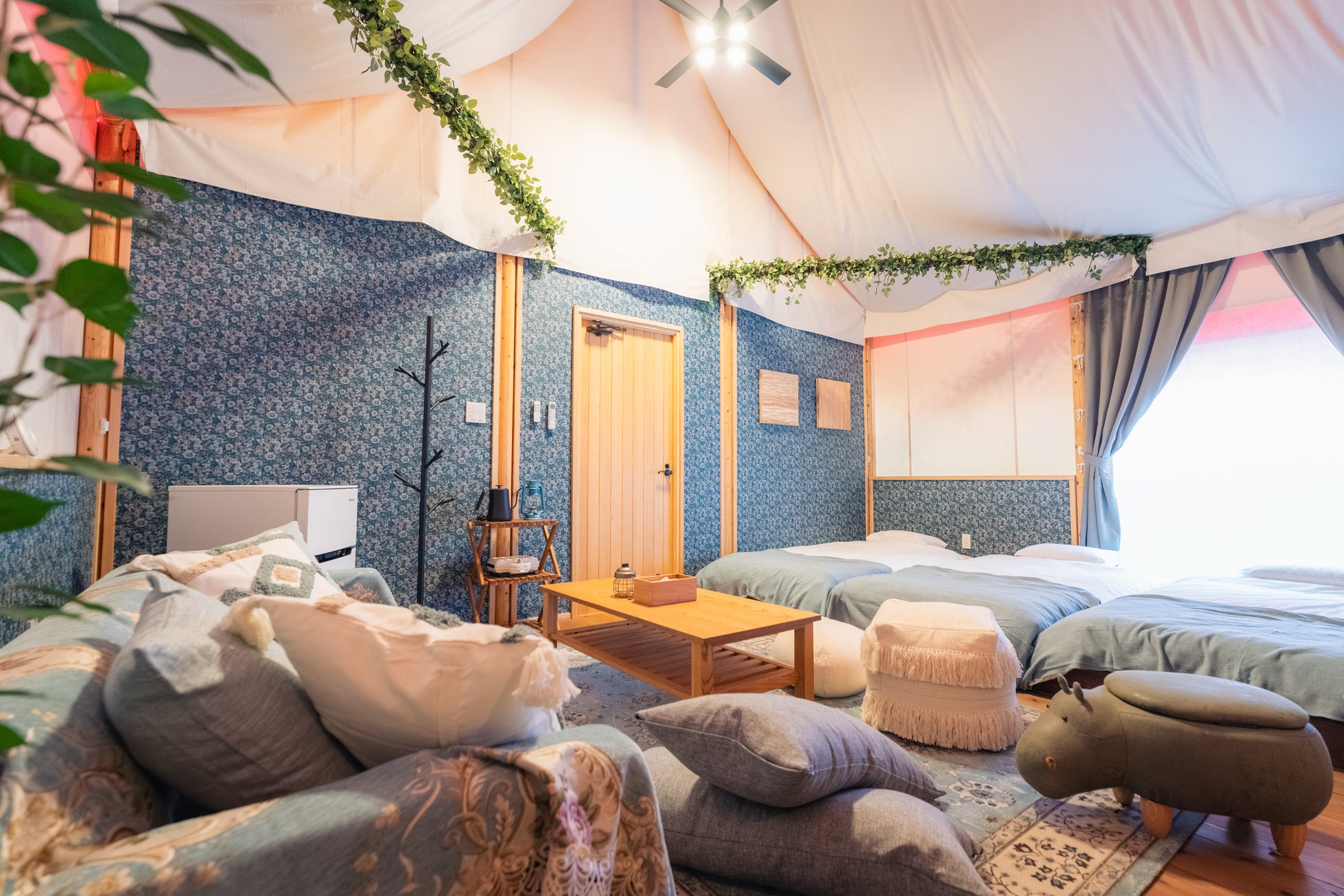ワンデイグランピングプランはトリプル・ファミリールーム各1部屋ずつの2部屋限定で、火曜日〜金曜日までの平日期間のみ公開しております。
