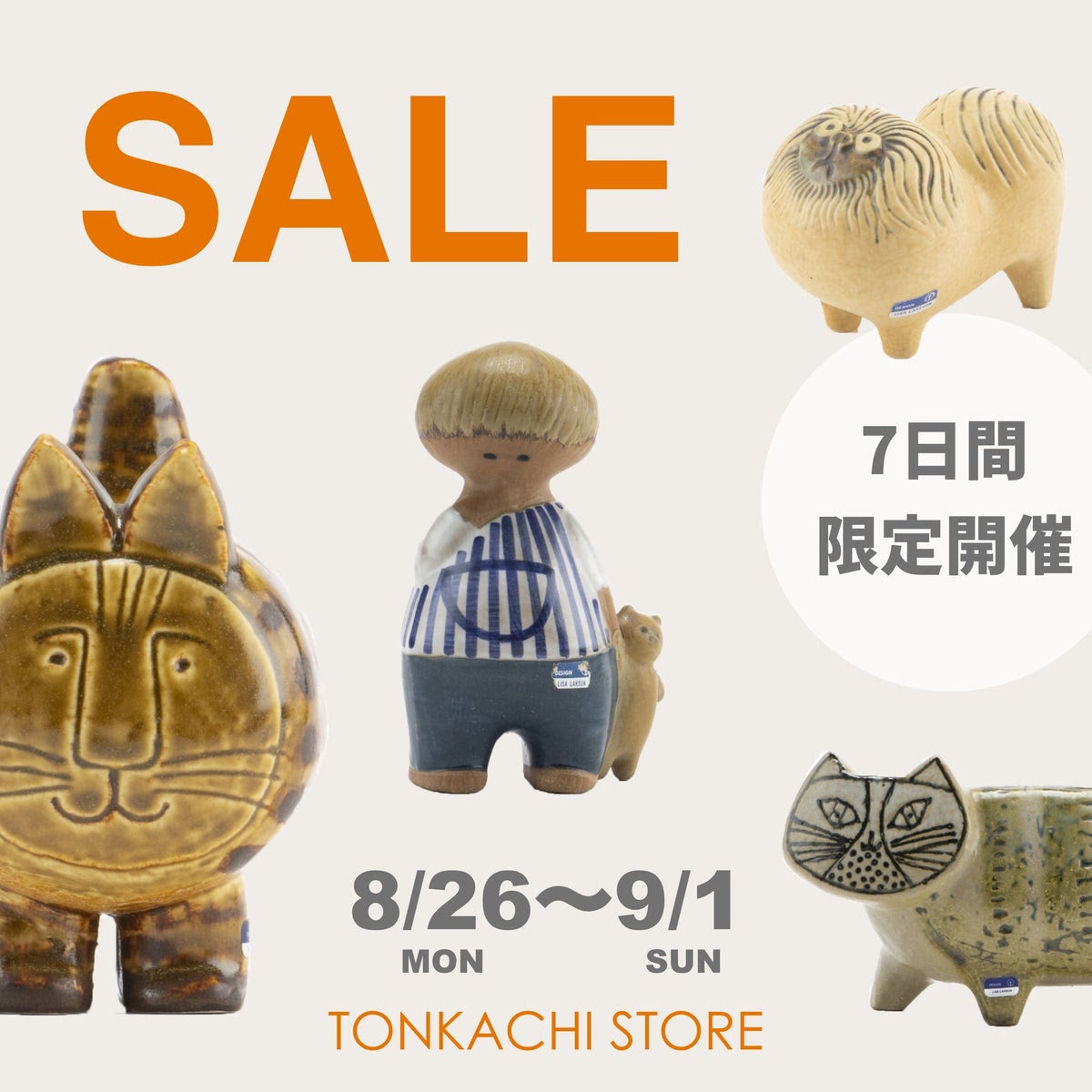 トンカチストア及び代官山の直営店「TONKACHI,6」にて、今年最後のSUMMERセールがついに始まりました!リサ・ラーソン、マリアンヌ・ハルバーグ、M.B.ゴフスタイン、ドナ・ウィルソンなどのアイテムが対象で、なんと最大で60%OFFのお得な割引が適用されます。ぜひこの機会にお目当ての商品をお得にゲットしてください!