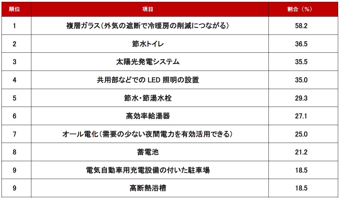 <不動産のプロが選ぶ!「環境に配慮した住まいにおすすめの条件・設備 2024」ランキング調査結果>