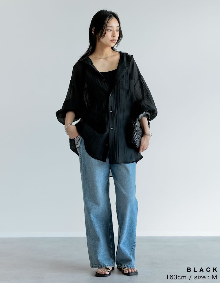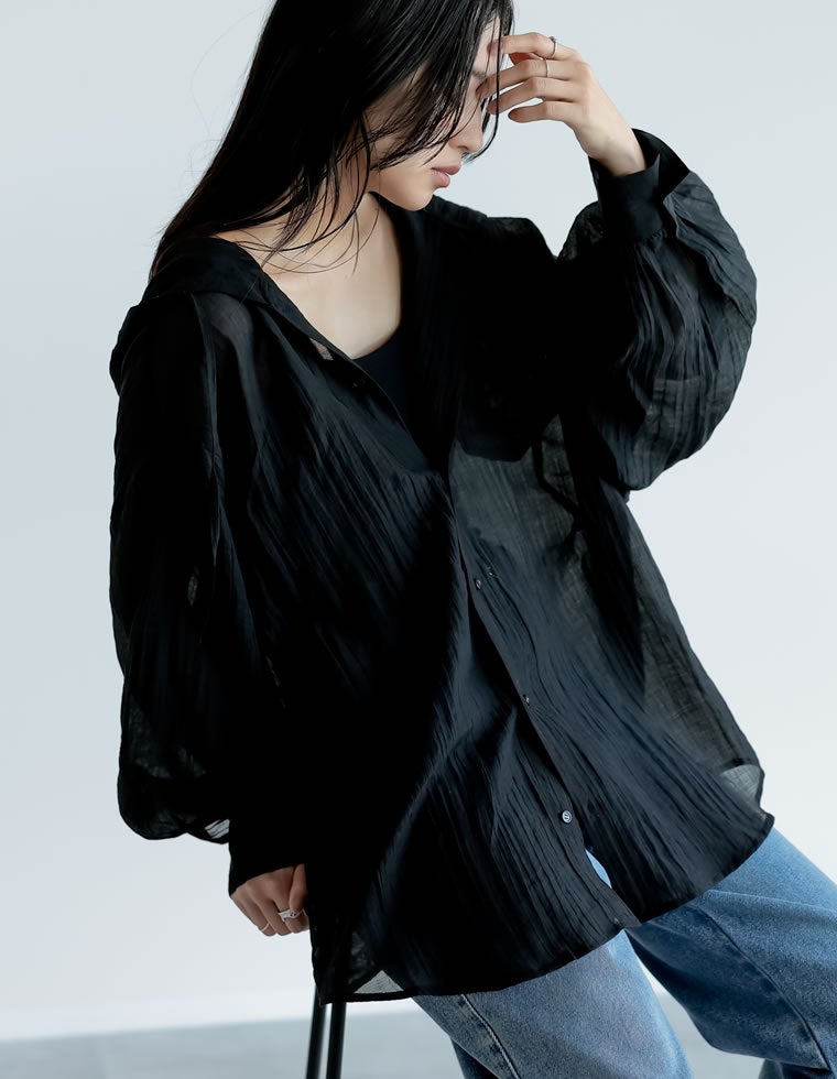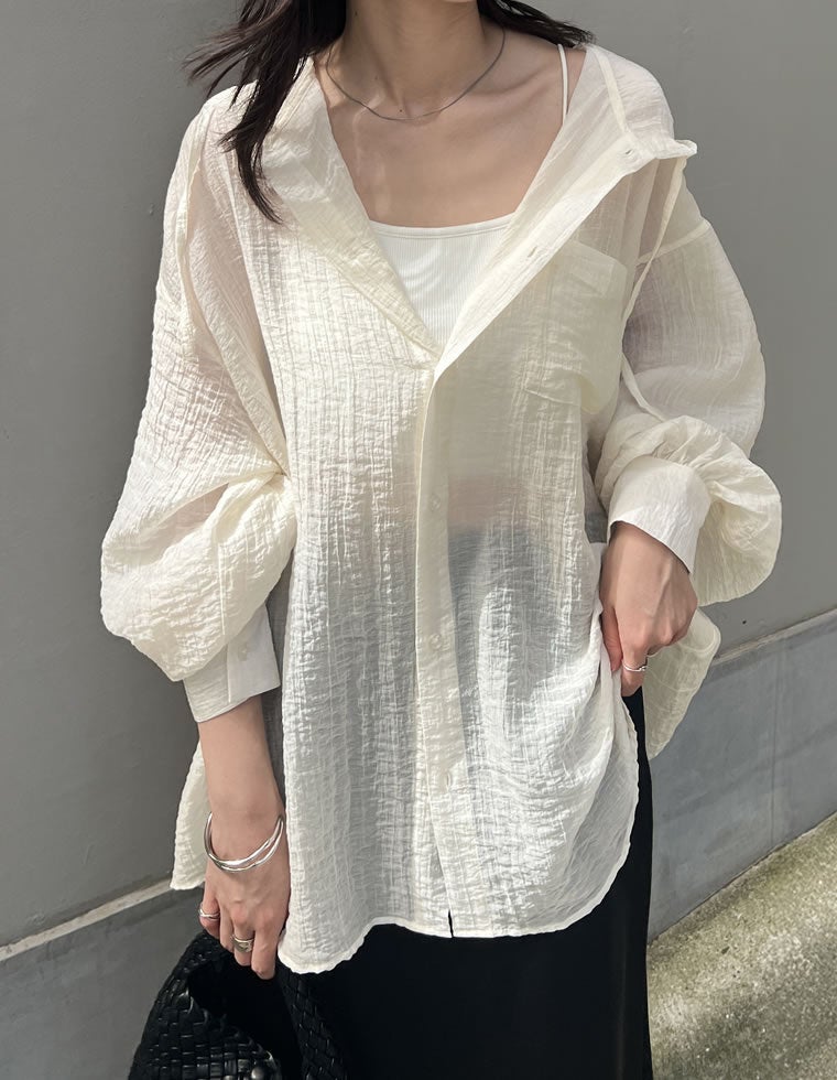 軽やかな生地感と程よい透け感が、春夏のレイヤードスタイルにぴったりです。