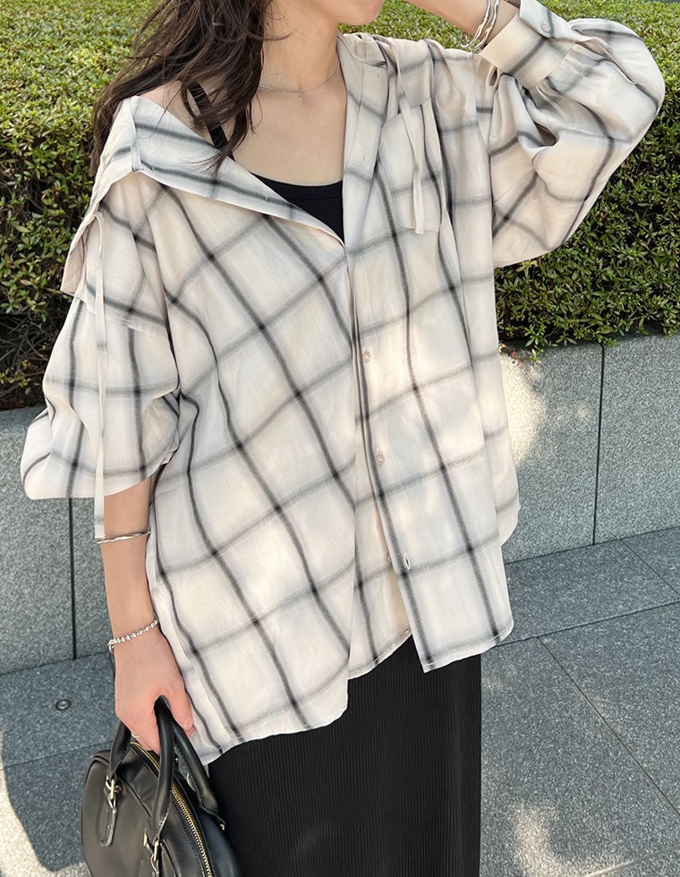無地orチェック柄フード付きオーバーサイズシャツ