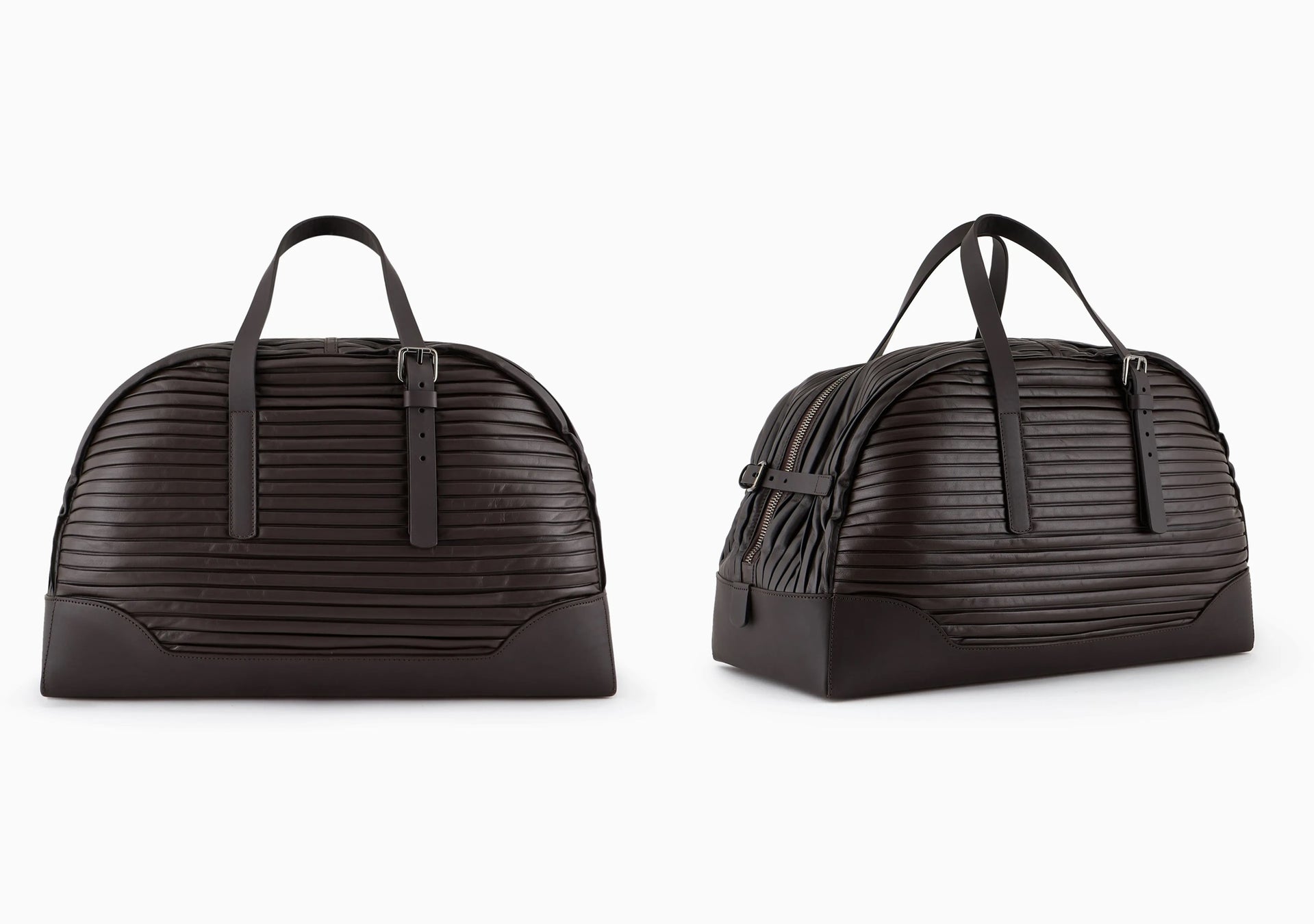 ナッパレザーを使用した洗練されたダッフルバッグはスペシャルなギフトとして。折り紙風のプリーツがソフトなボリューム感とリラックスした魅力を際立たせます。ダブルプルジップ開閉、調節可能なダブルハンドルとストラップを備え機能性にも配慮。コンパートメントとジップポケットを備えた収納力に優れたバッグは、外出先でもスマートに過ごしたいスタイリッシュな男性へのギフトに最適です。