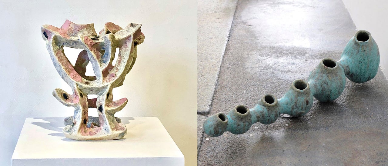 土や粘土、砂を焼き、形が生まれたのは、漆と同じ縄文時代です。どれだけの月日が経ち、現代に科学的な発展が起きようとも、この素材は今日も変わらない姿で私たちの目の前にありつづけ、形を保つことができます。私はその行為と結果を「時の痕跡を残す術」として捉えています。セラミックベースの作品群は、自身の想像/創造していたものとは異なり、自分の思う形では還元されることはなく、内と外の曖昧さや予想外の変容、空気と空虚を含み性質の変化を遂げ、新鮮な出会いとして目の前に立ち現れます。