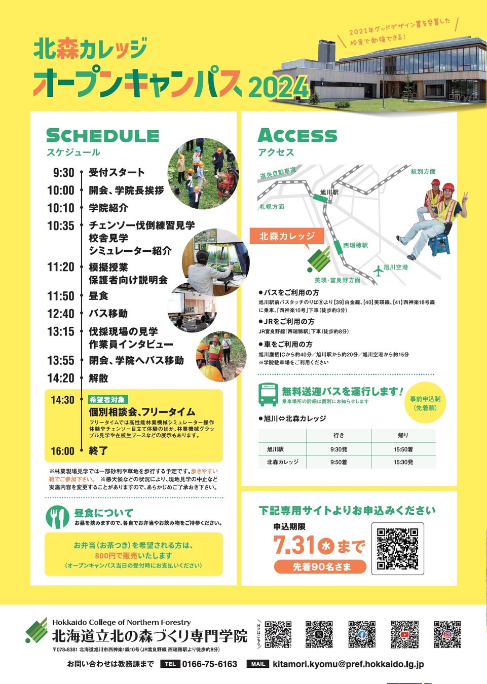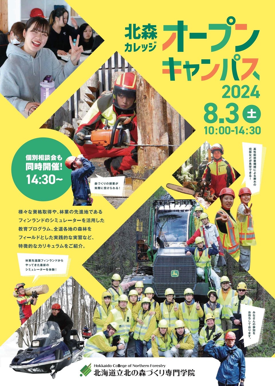 北海道立北の森づくり専門学院「オープンキャンパス」 8/3(土)開催