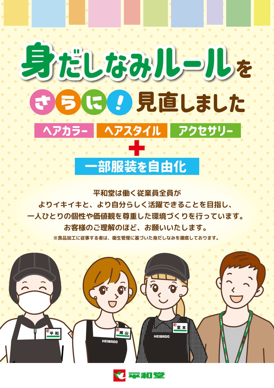 【平和堂】身だしなみルールをさらに見直し、3月1日(土)より従業員の服装の一部を自由化
