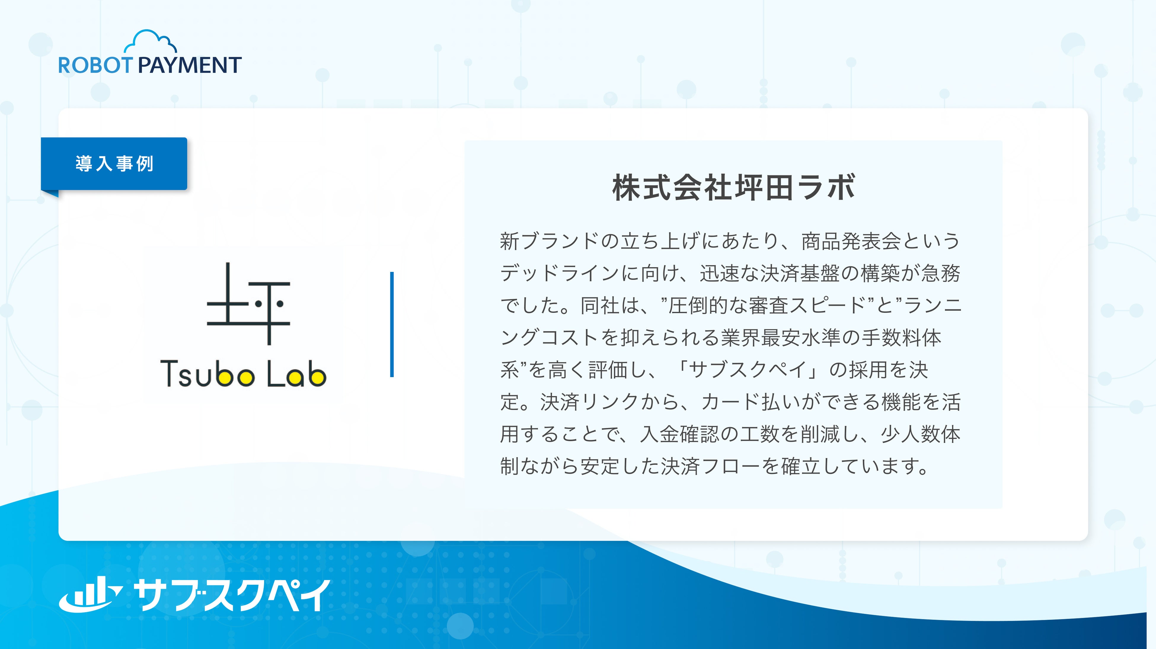 坪田ラボが「サブスクペイ」を採択。決め手は圧倒的な審査速度と、事業成長を支える業界最安水準の手数料体系