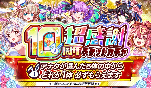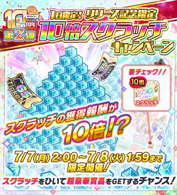 1日限定でスクラッチの報酬が10倍に!『10周年コスト65確定チケット』10枚や『コスト70確定チケット』10枚など豪華報酬を当てよう!