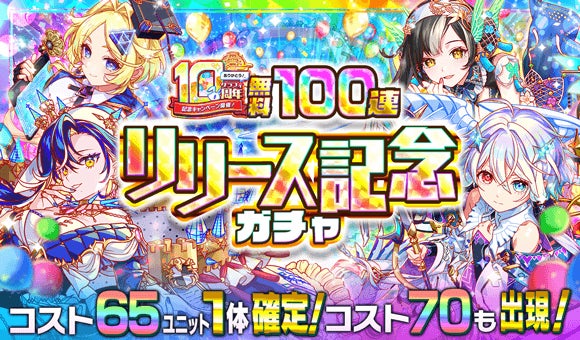 また7月7日限定『無料100連リリース記念ガチャ』など10周年にちなんだ10大キャンペーンも実施!