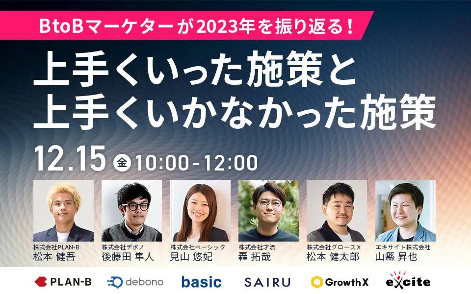 ベーシック、12/15(金)10時よりPLAN-B社主催のセミナー「BtoBマーケターが2023年を振り返る!上手くいった施策と上手くいかなかった施策」に登壇