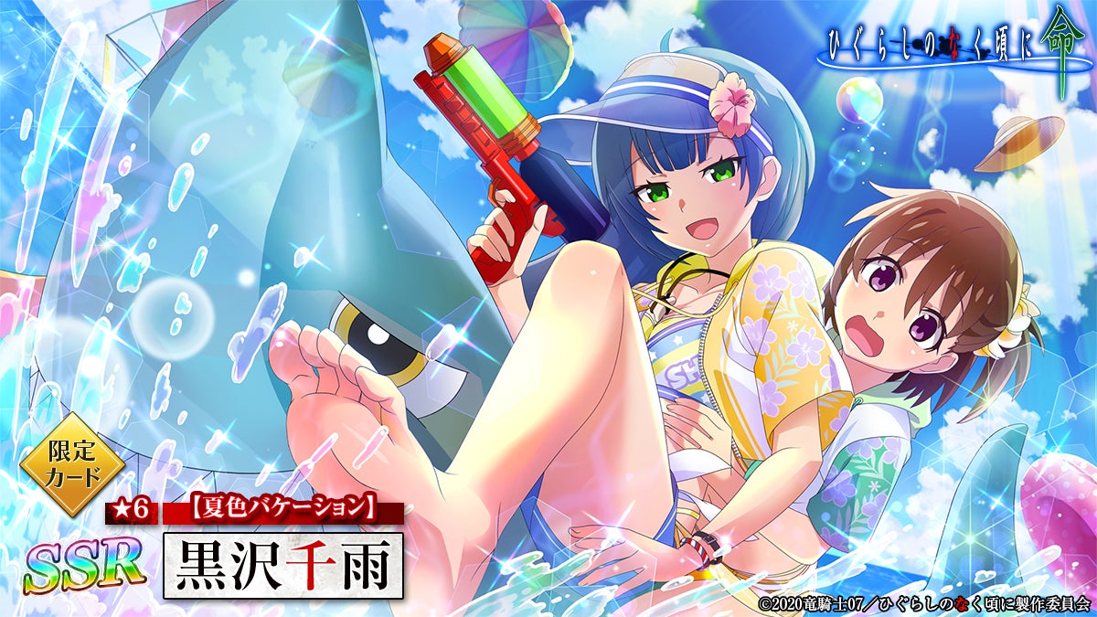 スマートフォンゲーム「ひぐらしのなく頃に 命」にて「黒沢千雨」が登場!期間限定開催の「限定カード登場ガチャ」にて『SSR【夏色バケーション】黒沢千雨』をGETしよう!