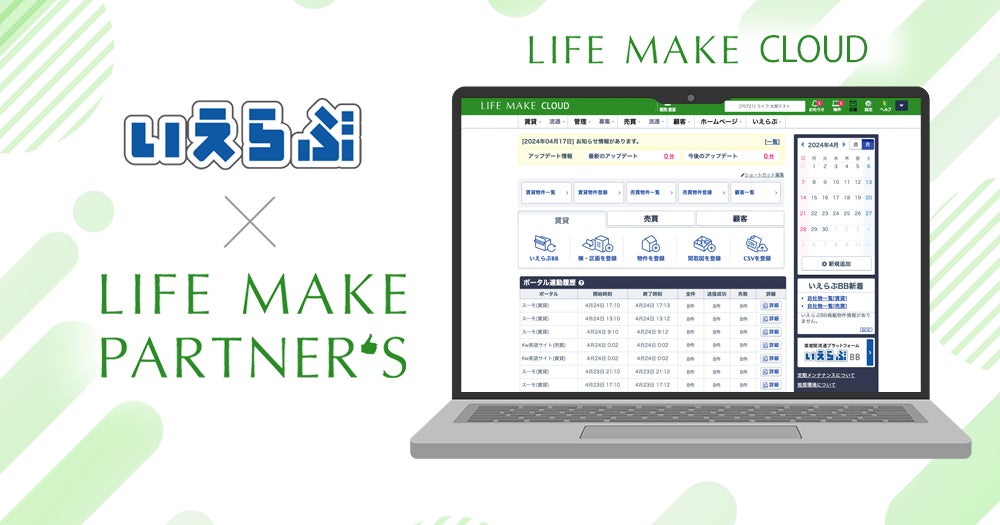2024年5月1日より、株式会社いえらぶGROUP(本社:東京都新宿区、代表取締役:岩名泰介、以下「いえらぶGROUP」)は、日本リアライズ株式会社(本社:東京都新宿区、代表取締役:大橋孝行、以下「日本リアライズ」)が開始する不動産フランチャイズ「ライフメイクパートナーズ」の加盟店向けに、業務支援クラウドサービス「LIFE MAKE CLOUD」の提供を開始しました。