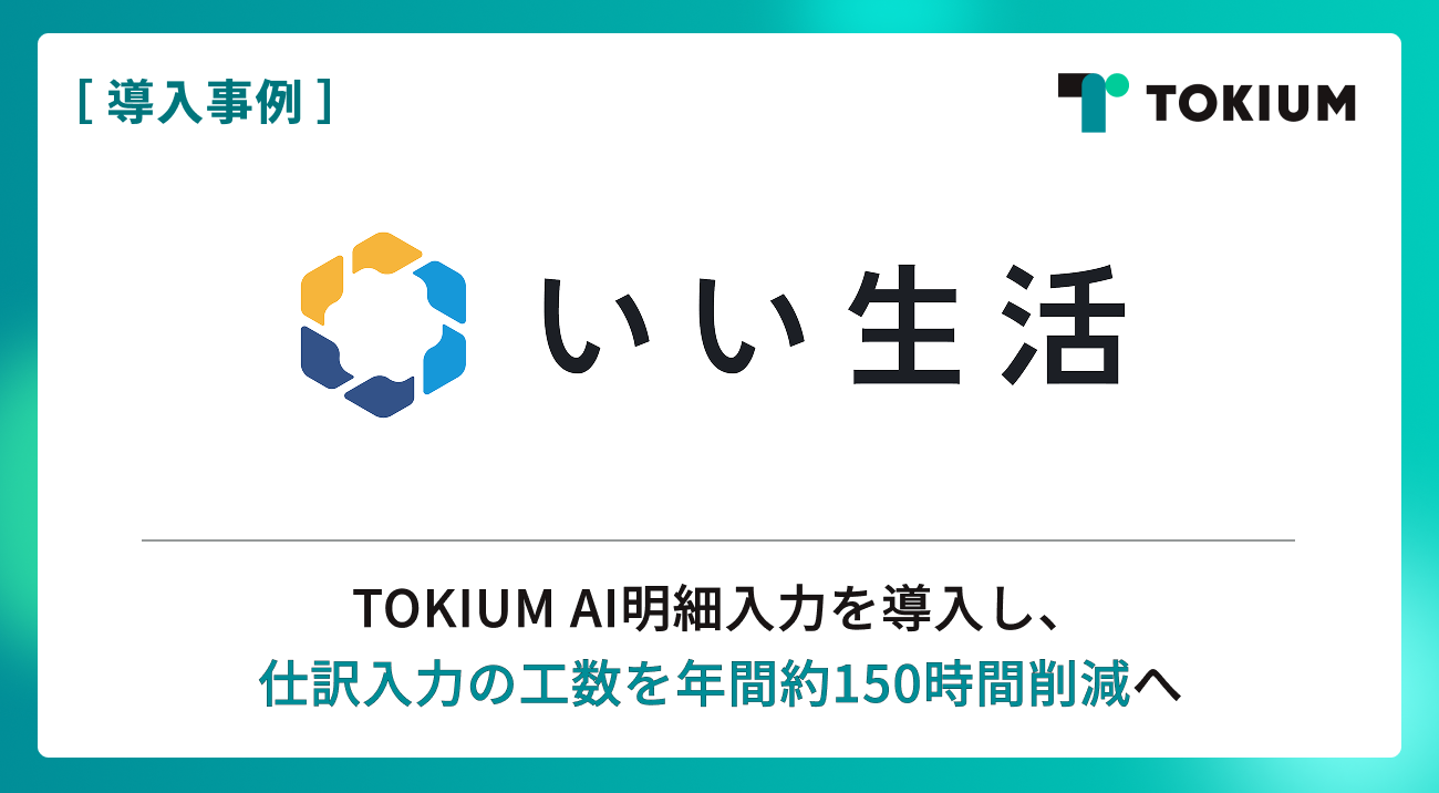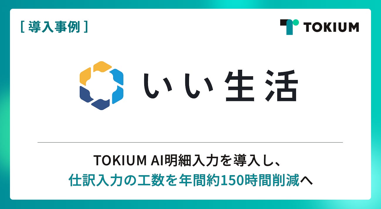 経理AIエージェントを提供する株式会社TOKIUM(本社:東京都中央区、代表取締役:黒﨑賢一、以下「TOKIUM」)は、株式会社いい生活(本社:東京都港区、代表取締役社長CEO:前野善一、東証スタンダード:3796、以下「いい生活」)がTOKIUM AI明細入力を導入したことをお知らせします。
