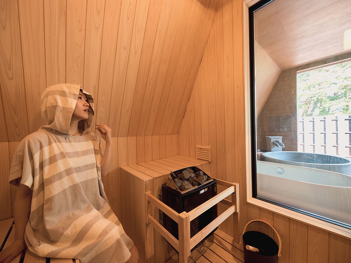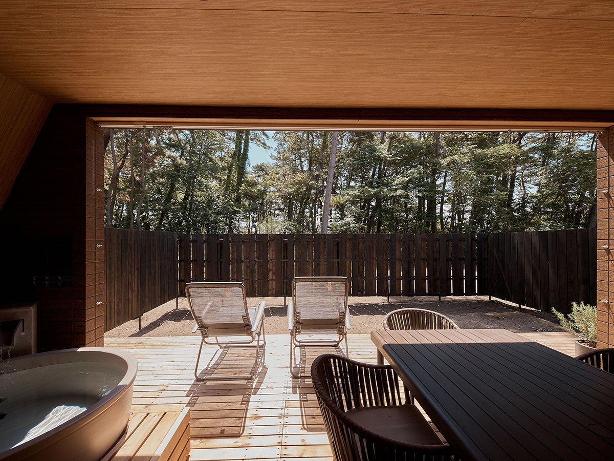 松林に囲まれたサウナ&温泉露天風呂付ヴィラは、“完全プライベートな滞在”をテーマとしています。