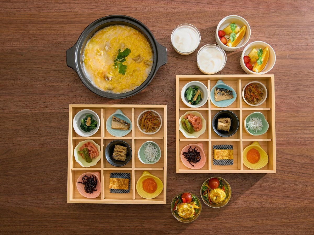ご朝食は、様々な具材をセルフアレンジできる雑炊など身体に優しい和朝食をご用意。
