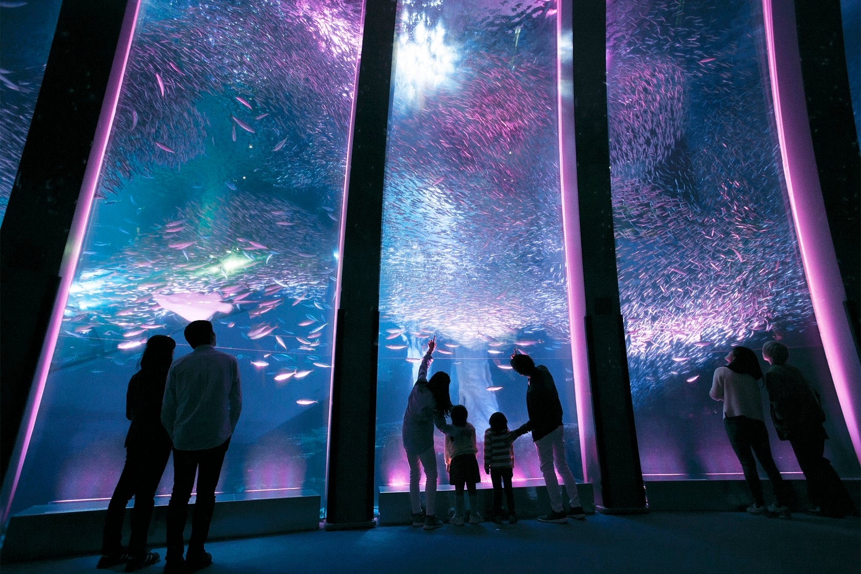 | 期 間 : 2022年3月1日(火)~4月22日(金) 時 間 : ①11:00~ ②12:15~ ③13:30~ ④15:30~ (約5分間) ※4月は開催時間が異なります。 場 所 : アクアミュージアム1、3階 LABO5 大水槽「大海原に生きる群れと輝きの魚たち」 ※4月23日(土)以降は演出が異なります。 |