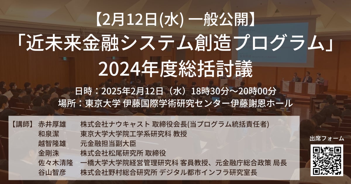 【2月12日(水)18:30〜】「近未来金融システム創造プログラム」の2024年度総括討議を一般公開