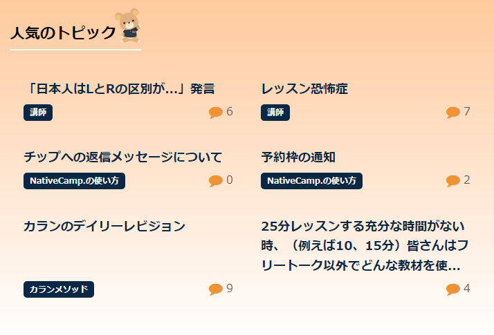 ネイティブキャンプ広場:https://nativecamp.net/message-board