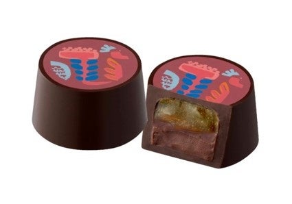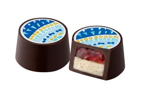 気分やシーンによって、冷凍庫に入れて冷やしていただくと、ひんやりジューシーでとろっとしたコンフィチュール※と、ダークチョコレートのパリッとした食感との絶妙なバランスを味わうことができます。チョコレートの天面には、デザイナーによるオリジナルデザインを施しています。