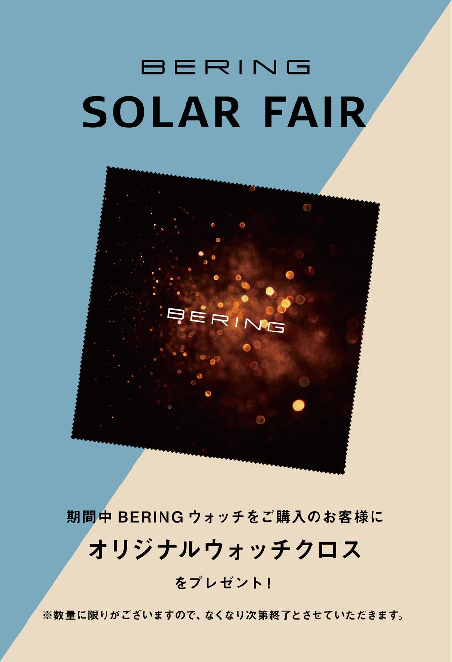 開催内容:BERINGのソーラーウォッチを幅広く展開し、期間中BERINGウォッチをご購入の方に先着でオリジナルウォッチクロスをプレゼント。※無くなり次第終了。